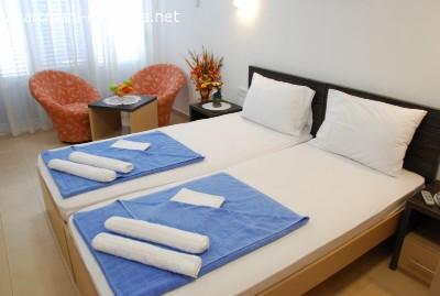 U našoj ponudi se nalaze dvokrevetni, trokrevetni i četverokrevetni apartmani..Apartmani koje posjedujemo su moderno opremljeni sa svim pratećim sadržajima (klima uređaj, kablovska TV, kuhinja, kupatilo, bežični internet, terase sa pogledom na more) pri čemu posebno ističemo komfor i prostranost apartmana kao i samu blizinu plaže.