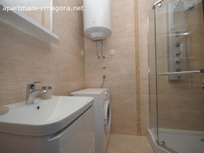 Stan se sastoji od dnevnog boravka, spavaće sobe, kuhinje s perilicom suđa, kupaonice s perilicom rublja, namještenom terasom s pogledom na more. Apartman je opremljen je klima-uređajem i bežičnim pristupom internet, modernim namještajem, talijanskom keramikom i kabelskom TV. Terasa s panoramskim pogledom na more i stari grad. U blizini je trgovina "TQ Plaza", supermarket i zelena pijaca. Gradsko parkiralište uz doplatu. Nova zgrada. Stan je kompletno namješten i opremljen, sprat 5. Lift. Maksimalno za 4 osobe. Cijena ovisi od sezone, od 40 do 98 eura po danu.U maju - 40 eura po danu,